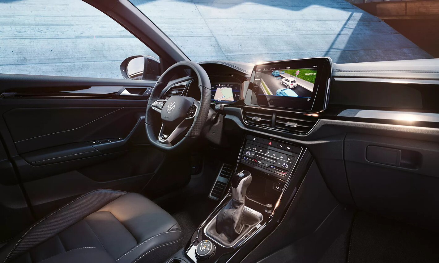 De binnenkant van de T-Roc verwelkomt je met een hoogwaardige inrichting. Zo versterkt het zachte dashboard met decoratief stiksel het gevoel van de digitale cockpit. De klassieke knoppen hebben plaatsgemaakt voor moderne, aanraakgevoelige oppervlakken.