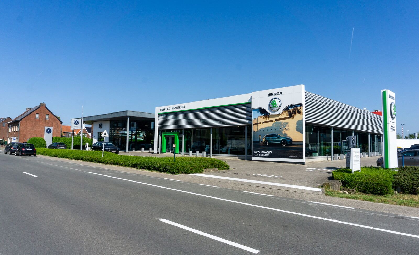 De sleutelkluis bevindt zich rechts naast onze Škoda showroom juist naast de witte poort aan de achterkant. Hier kun je eenvoudig en veilig je autosleutel achterlaten. Op de foto is de sleutelkluis omcirkeld in het rood zodat je deze gemakkelijk kunt herkennen.